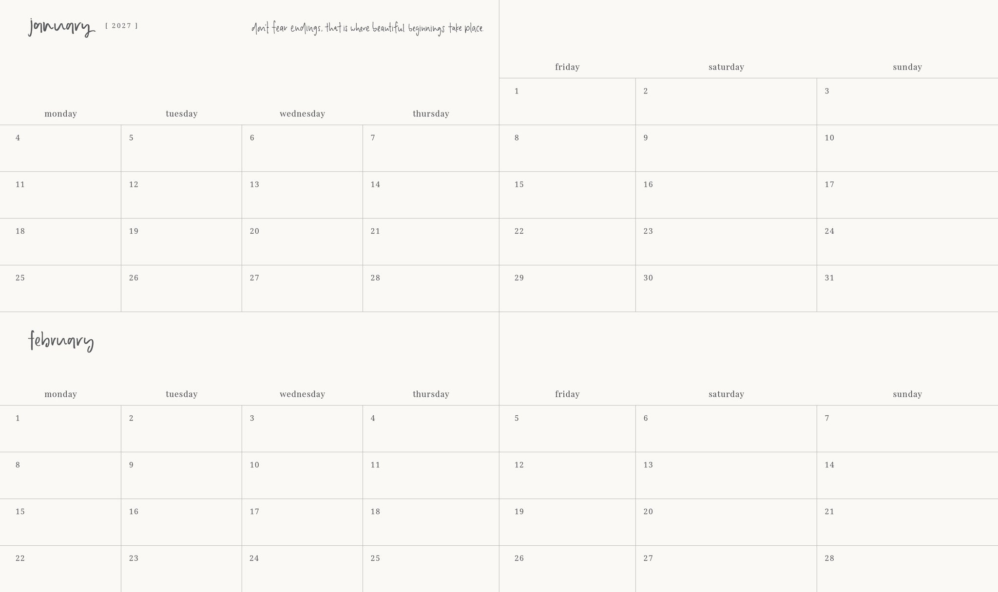 They’re intentionally free from hourly increments and won’t force out daily goals, tell you what to write (or where to write it).